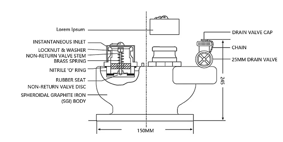 يتميز بهيكل علمي مع وصلات دخول وخروج مخصصة: يعتمد المدخل على وصلة نحاسية ذكرية فورية مقاس 2.5 بوصة (متوافقة مع BS 1982 وBS 336) لتوصيل الخرطوم بشكل آمن، بينما يتكون المخرج من شفة مقاس 4 بوصات/100 مم (متوافقة مع معايير BS 4504، 4 بوصات الجدول E، ANSI 150# أو BS10D الجدول D) للربط بنظام إطفاء الحريق الداخلي للمبنى. تتبع عملية الإنتاج خطوات دقيقة - من الرسم وصنع القوالب إلى الصب، والتشغيل الآلي باستخدام الحاسب الآلي، والتجميع، والاختبار، وفحص الجودة، والتغليف - مما يضمن أداءً مستقرًا وموثوقًا في حالات الحرائق الحرجة.