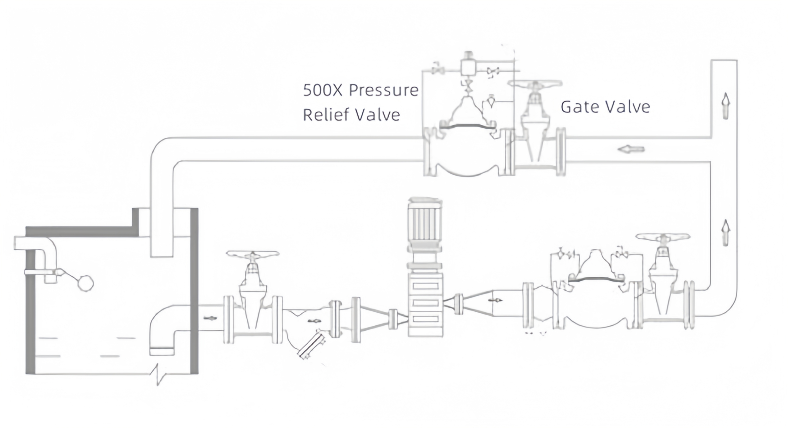 يتكون صمام تخفيف الضغط 500X من صمام رئيسي، وصمام تجريبي لتخفيف الضغط، وصمام إبرة، وصمام كروي، ومقياس ضغط. يعمل تلقائيًا بواسطة نظام توصيل تحكم هيدروليكي، ويمكن استخدامه كصمام تخفيف ضغط وصمام تثبيت ضغط. عند استخدامه كصمام تخفيف ضغط، يمكنه الحفاظ على ضغط خط إمداد المياه أقل من قيمة الأمان المحددة. كما يمكن استخدامه كصمام تثبيت ضغط للحفاظ على ضغط الماء أعلى من القيمة المحددة، وكذلك ضغط إمداد الماء أعلى من الصمام الرئيسي. وهو منتج مُحسّن ومُستبدل لصمام الأمان النابضي.