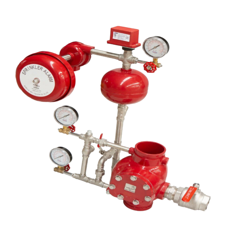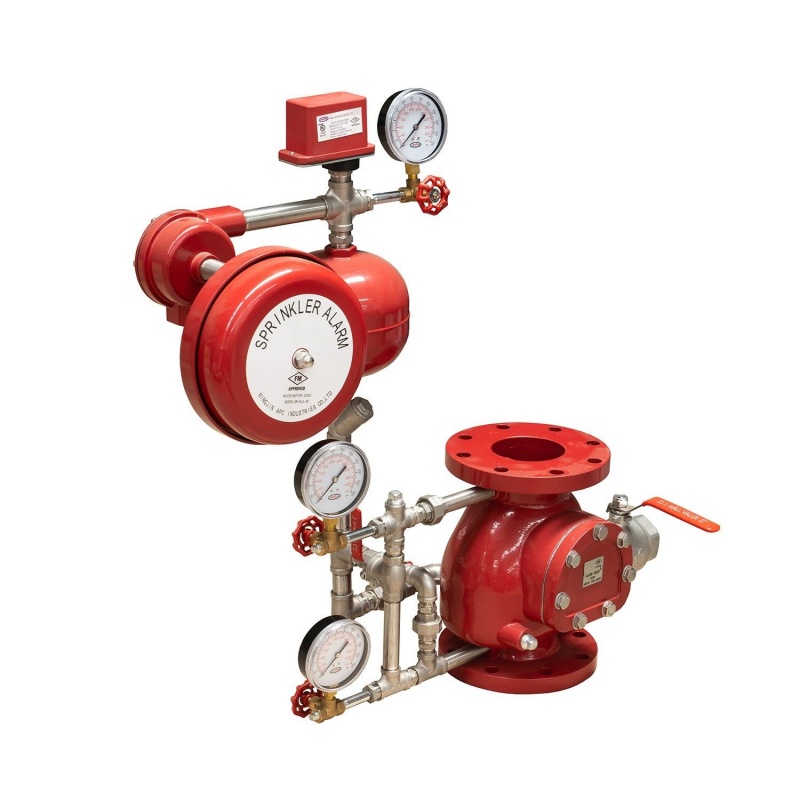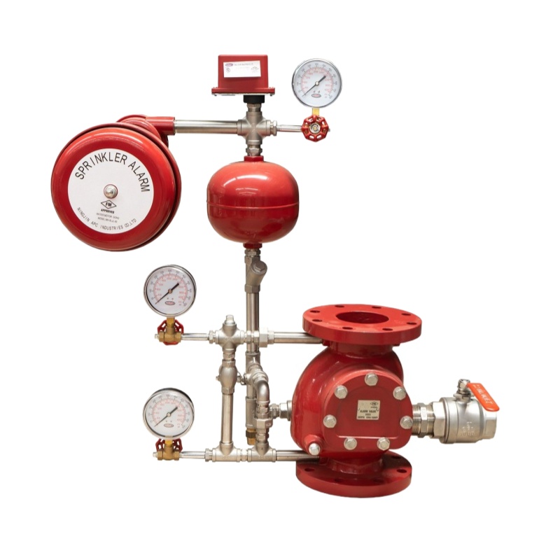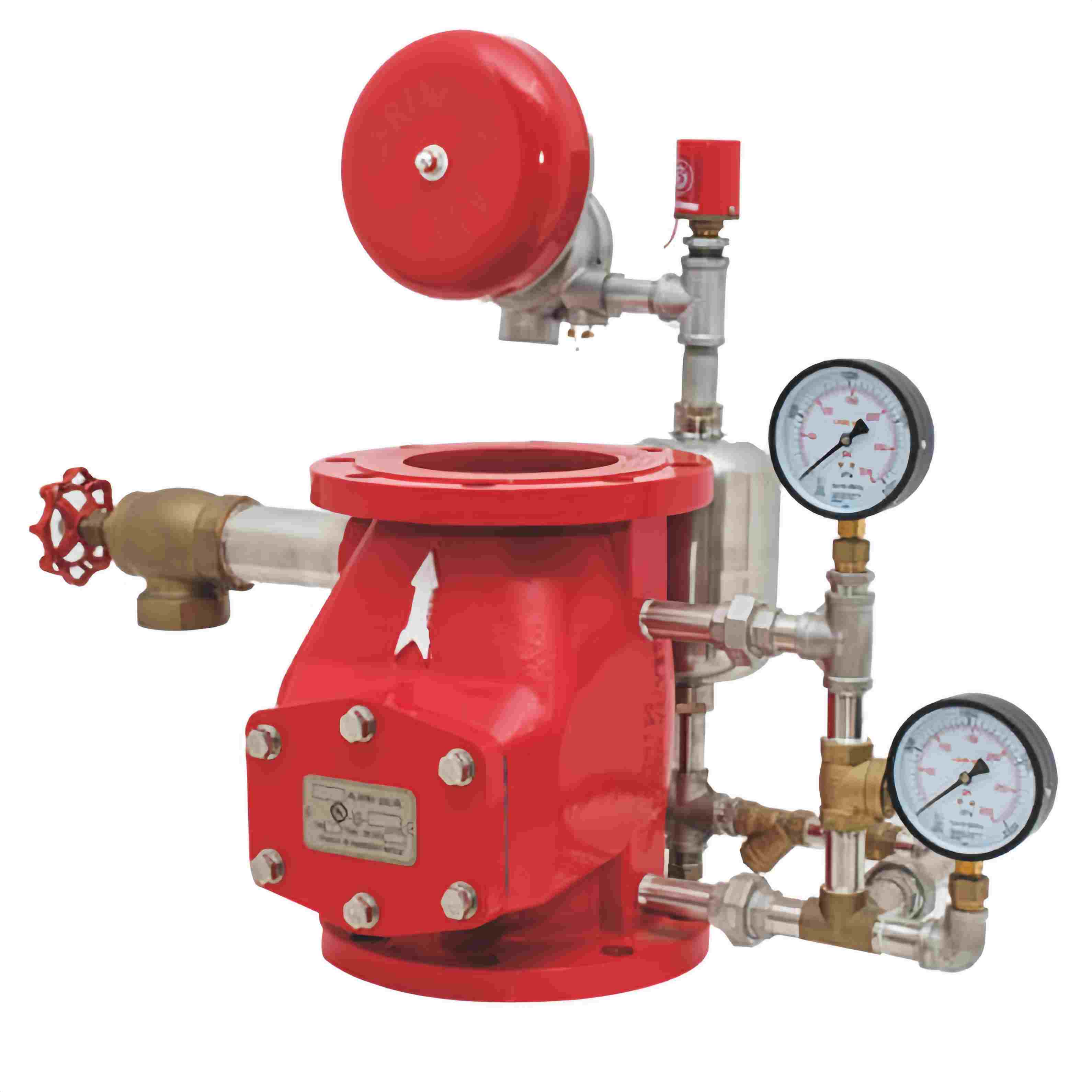 • إنذار يعمل بالضغط: يتم تنشيط إنذار المحرك المائي الميكانيكي أو مفتاح الضغط الكهربائي تلقائيًا عندما يتجاوز تدفق المياه معدلًا محددًا مسبقًا (عادةً 4-10 جالون في الدقيقة).